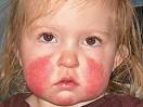 Barn med femte barnesykdom (se video) - Utslett kinn, Den 5. Kommer gjerne eksemet p kinn og hake, mens strre barn pleier.