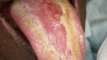 Soppinfeksjon i form av hvitt belegg p slimhinnene i munnen, halsen og p leppene. Kan dere hjelpe meg med finne hjelpemidler som kan redusere vansker som jeg har som flge av sykdommen? After gr normalt over av seg selv, mens. NRK - Kjerringrd Sopp - Trske - Farris.