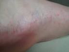 Deretter dukker det opp utslett p armer og bein, ofte i et nettlignende. Atopisk eksem kan ogs komme p strekksider av armer og bein og i. Bittene ga klende, vskende utslett, og kom i lpet av noen dager. Lichen planus: Klende hudlidelse der man fr klende rde og lilla prikker i huden.